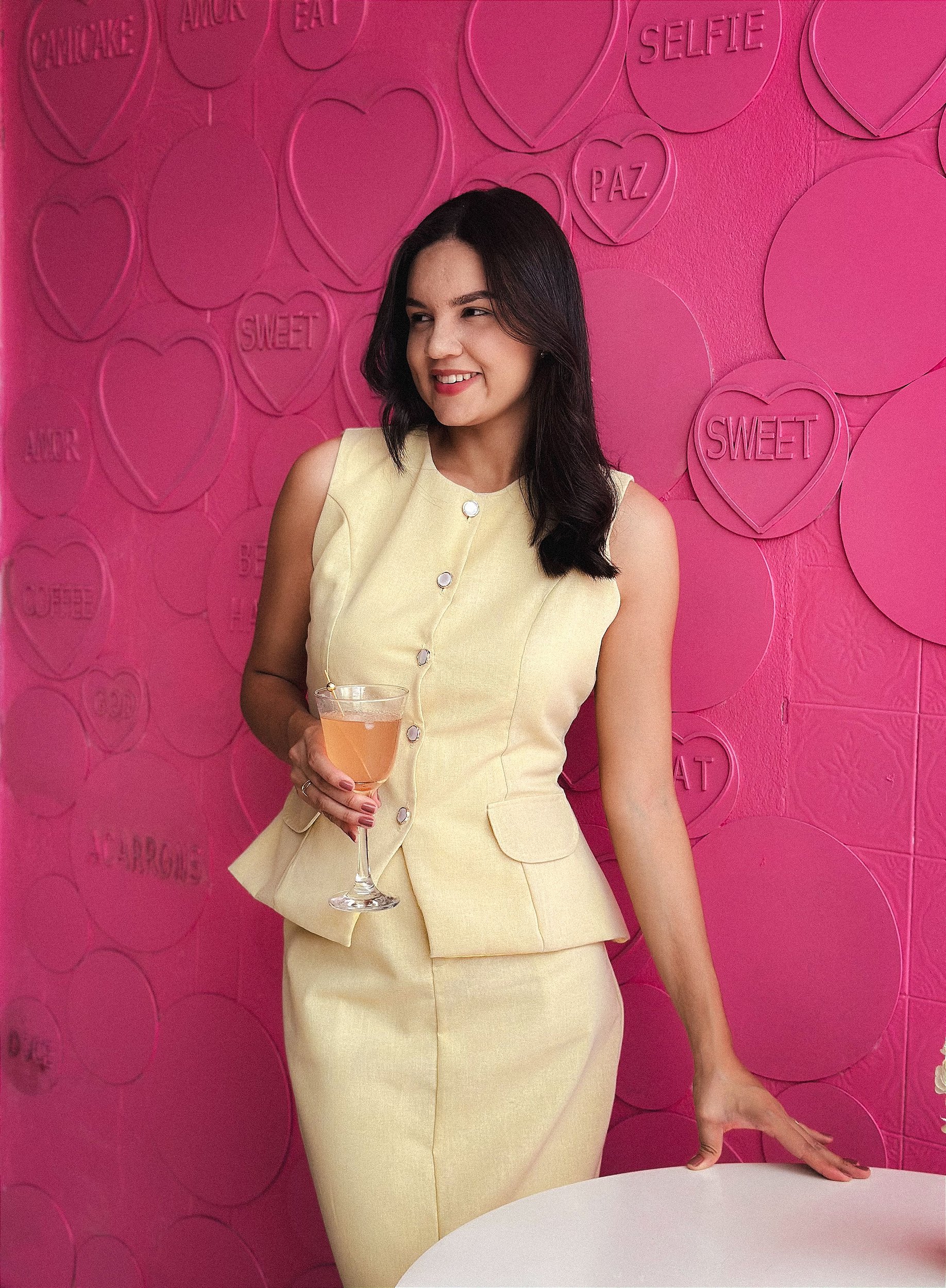 Confeccionado em linho de algodão no tom de amarelo manteiga e forrado em viscose, oferece conforto, frescor e um acabamento sofisticado.