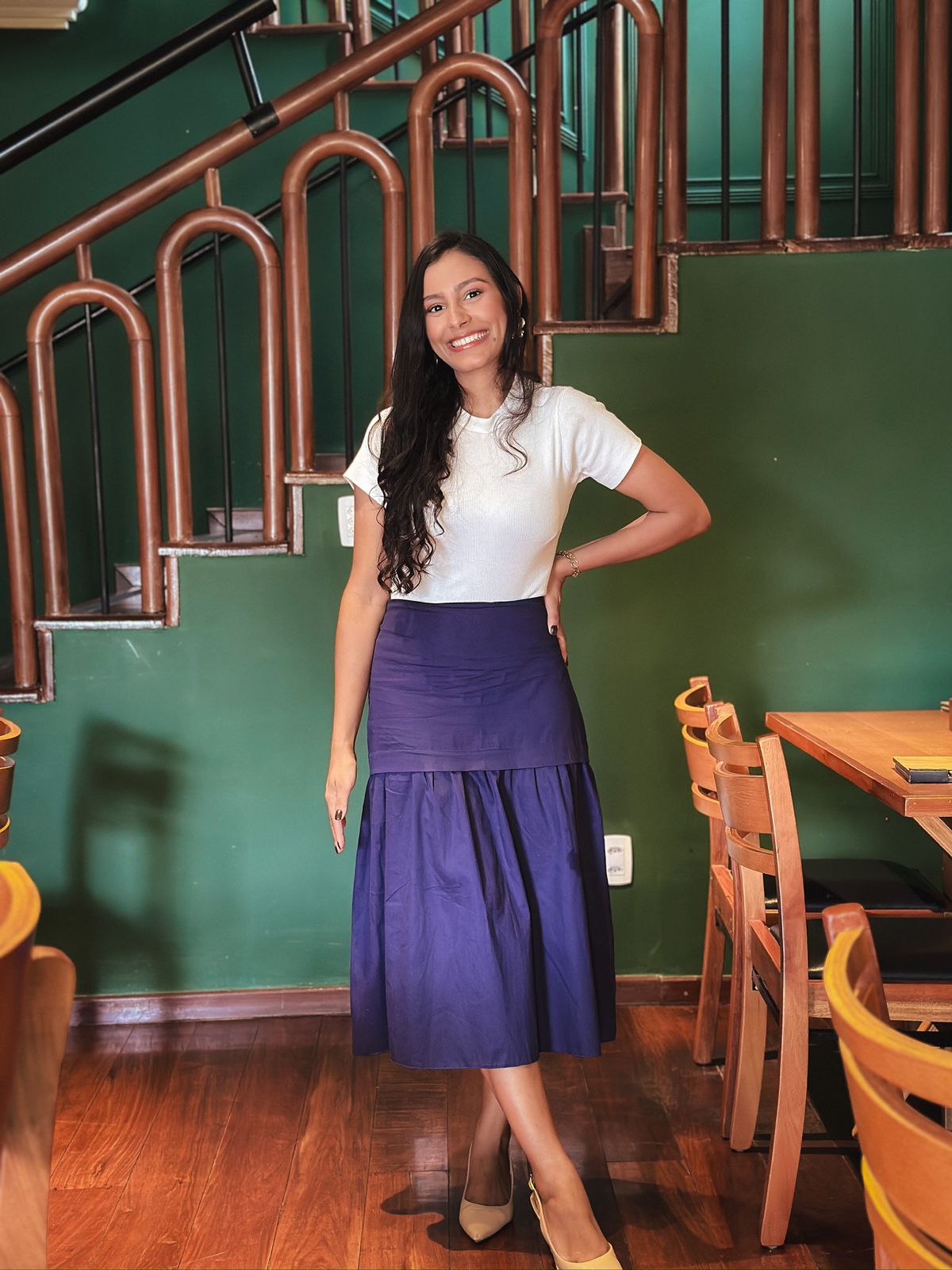 Confeccionada em tricoline 100% algodão e forrada em viscose, a Saia Marina une conforto, estrutura e elegância em uma proposta atemporal.